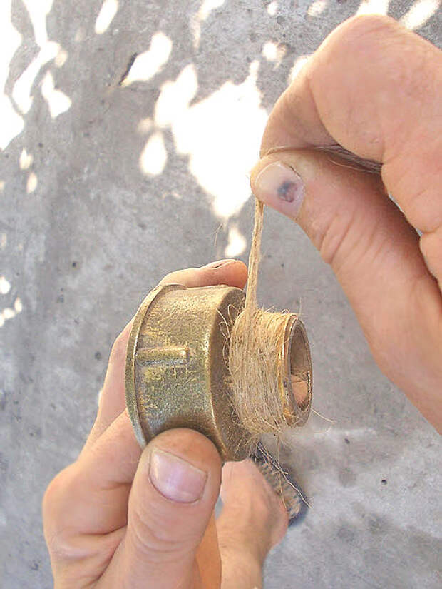 Пакля накручивается против направления завинчивания футорной гайки. Её необходимо скрутить в жгутик и намотать небольшим конусом. Чтобы сделать это соединение более долговечным, сама резьба футорки промазывается масляной или нитрокраской, потом поверх неё наматывается пакля и также обильно пропитывается краской. Такой «дедовский» способ герметизации футорной гайки ещё ни разу не подводил на протяжении многих лет.